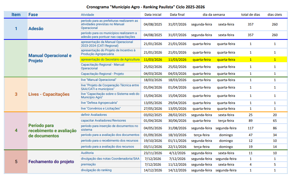 Clique aqui para Baixar o Cronograma do Ciclo 2025/2026 - Município Agro - Ranking Paulista